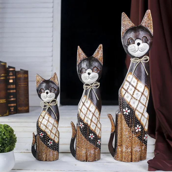 Сувенир дерево "Кошка с мозаичными вставками" серая 80х13х7 см — Характеристики