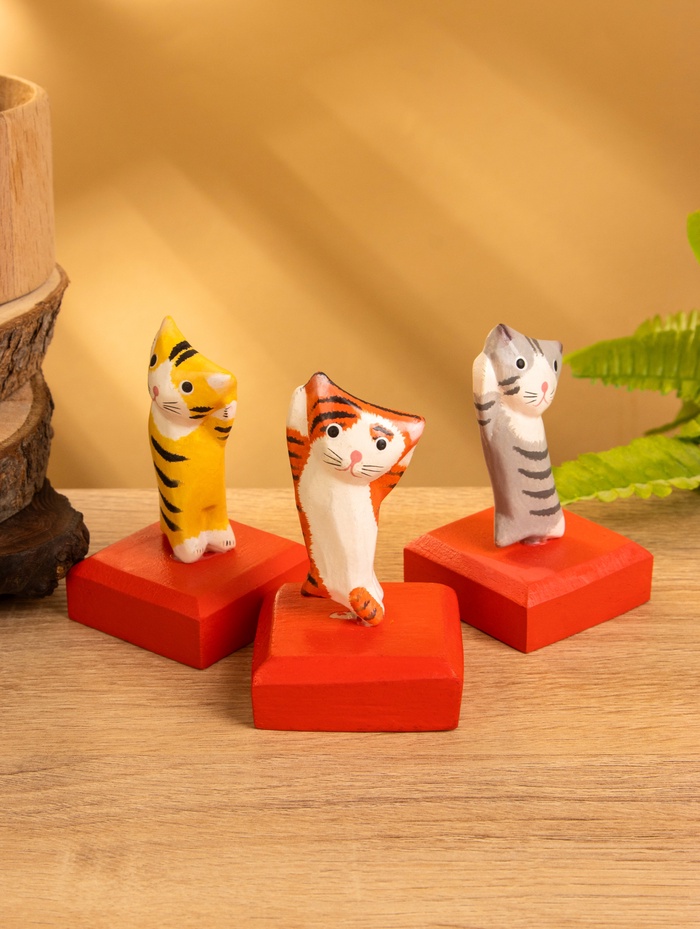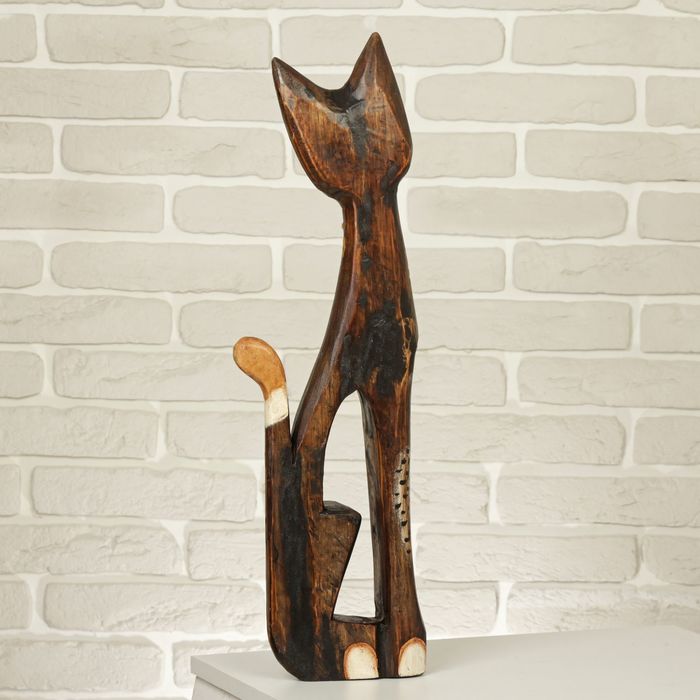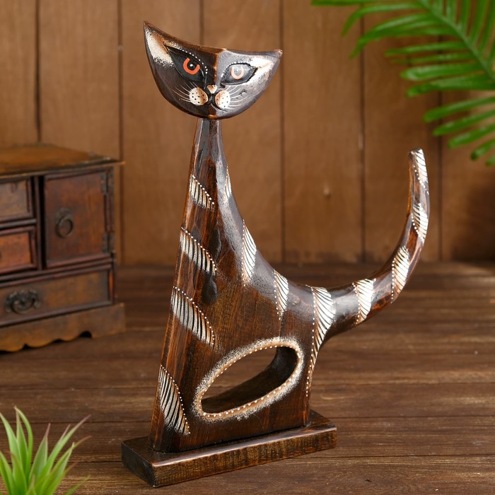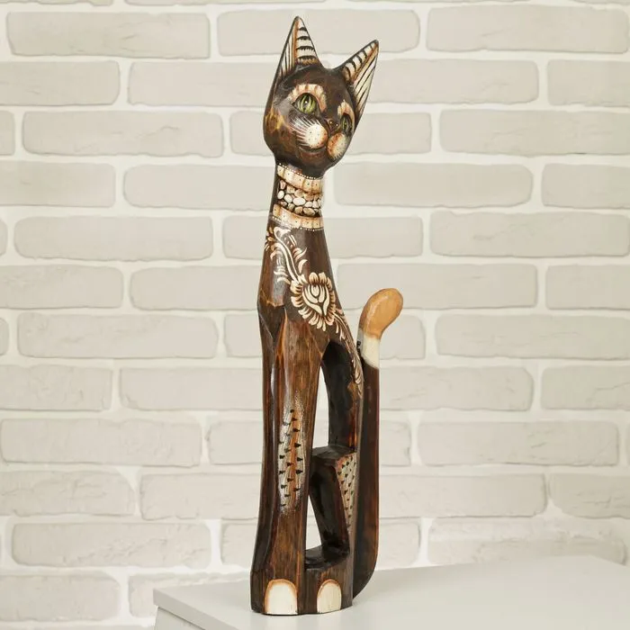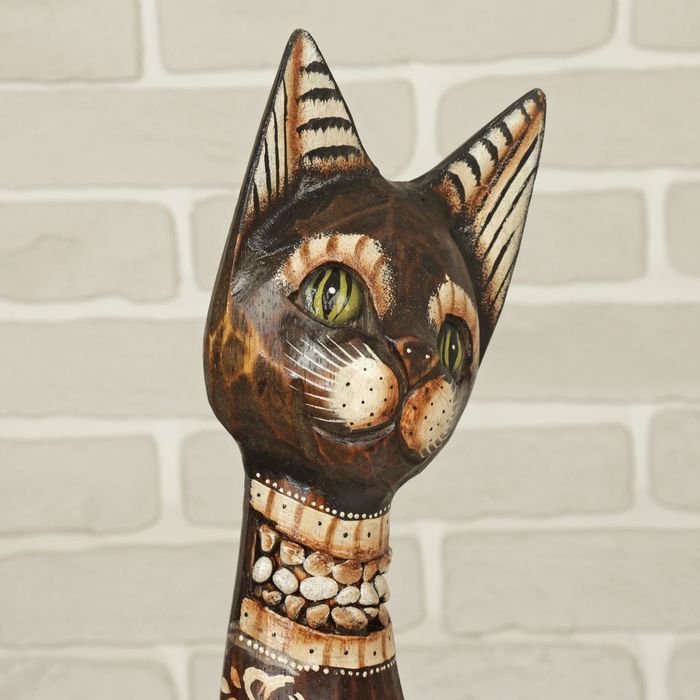 Сувенир дерево "Кошка в ошейнике из камней и с расписным цветком" 60х12х6 см — Характеристики