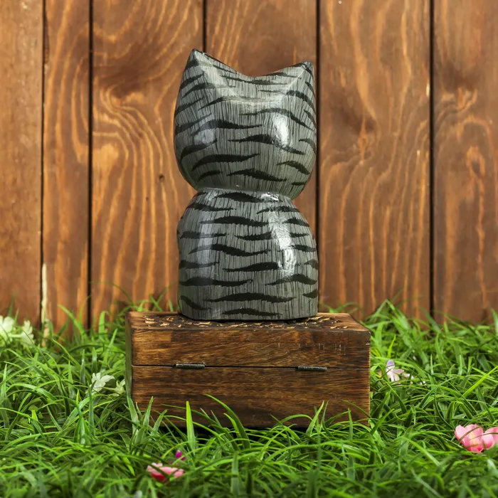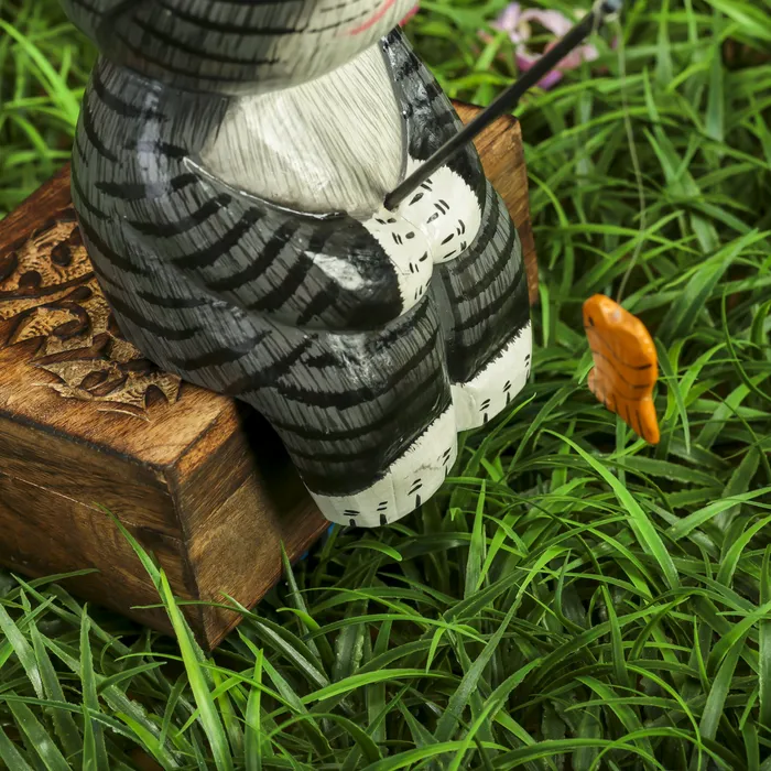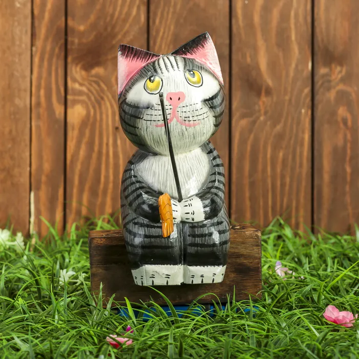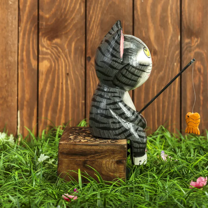 Сувенир дерево "Котёнок рыбак" серый 9х9х25 см — Характеристики