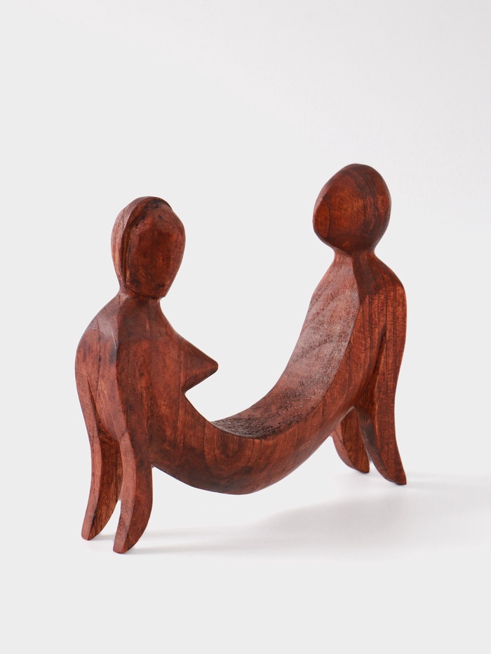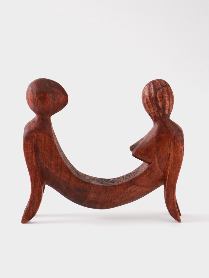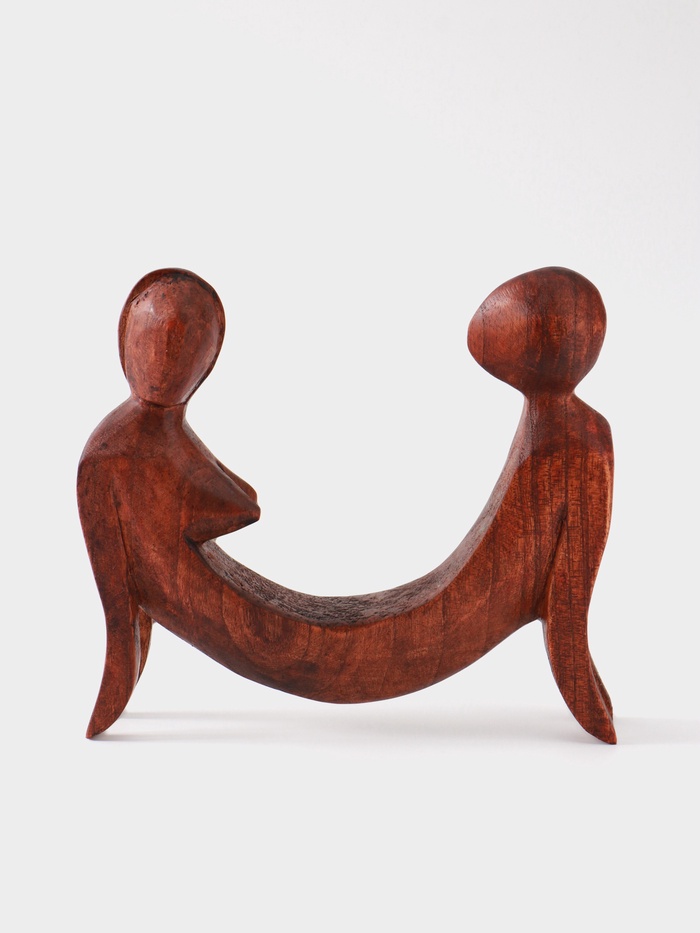 Деревянная композиция «Единство» — минималистичная скульптура пары, вырезанная из натурального дерева и окрашенная в естественный коричневый тон. Без покрытия, без излишеств — только силуэты двух людей, чьи контуры сливаются в одном движении. Такой сувенир подчеркнёт гармонию в отношениях и станет тихим напоминанием о важном в любом доме.