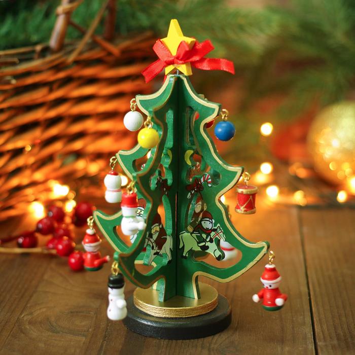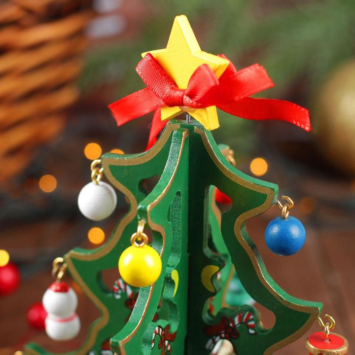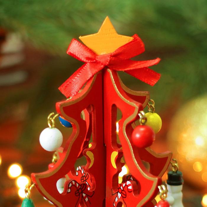 Нарядная деревянная ёлочка – оригинальное решение для стильного праздничного интерьера. Складной сувенир легко собирается и разбирается по частям. Подготовка помещения к Новому году не займёт много времени и сил.