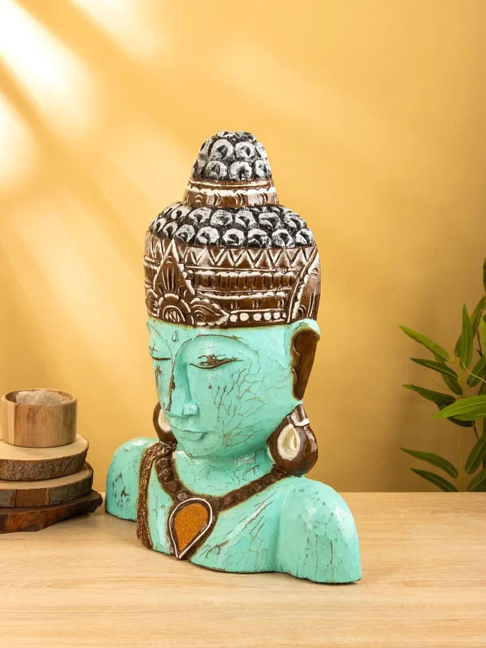 Сувенир «Голова Будды», 45×15×50 см, дерево, бирюзовый — Характеристики