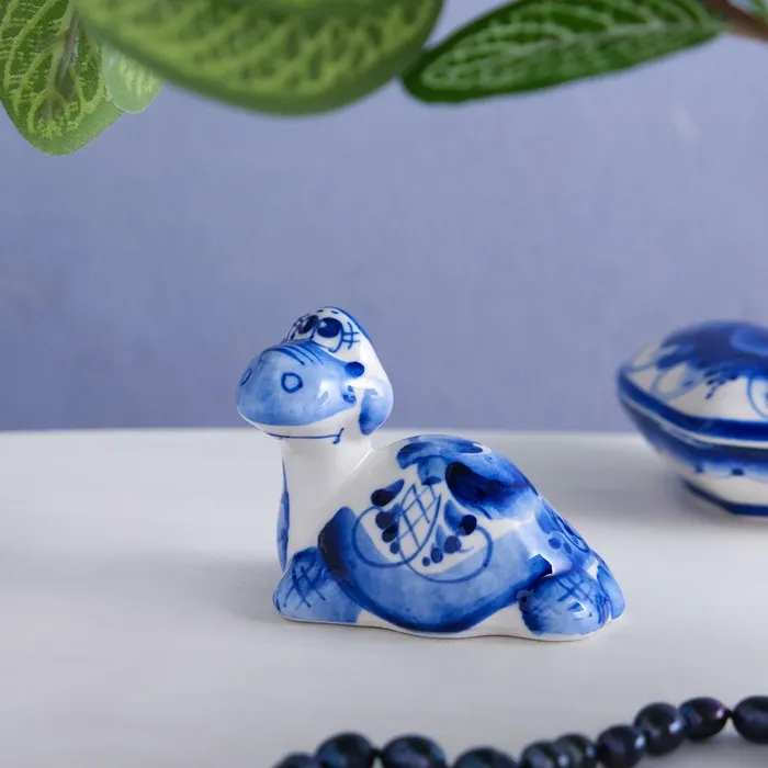 Сувенир гжель «Черепаха с длинной шеей», бело-синий,керамика, 6 гжель, — Характеристики