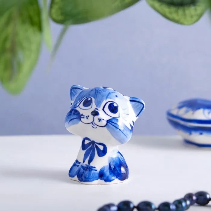 Сувенир гжель «Кот Гав», бело-синий,керамика, 6 см, — Характеристики