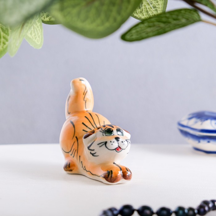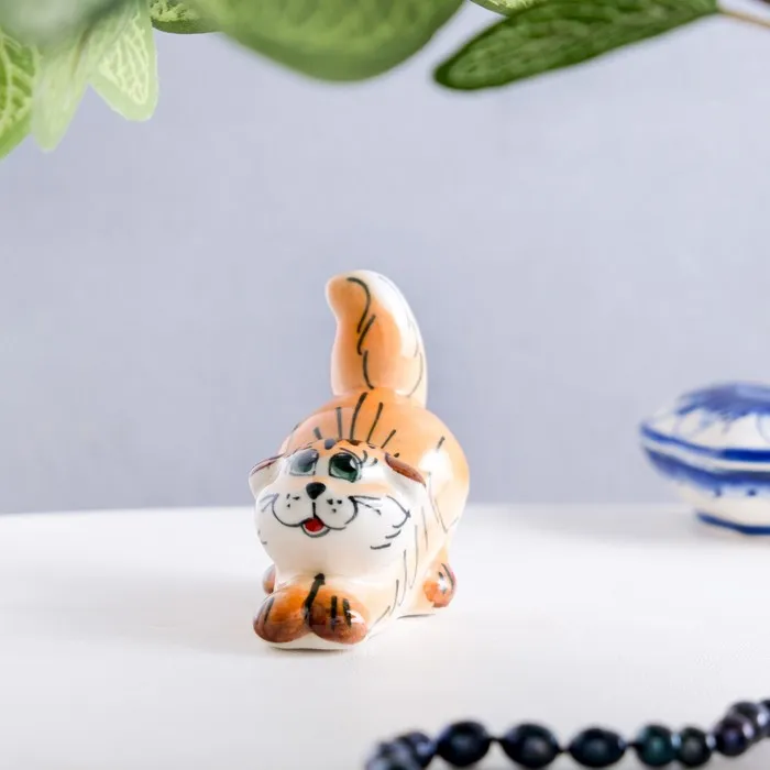 Сувенир гжель «Котик», бело-синий,керамика, — Характеристики