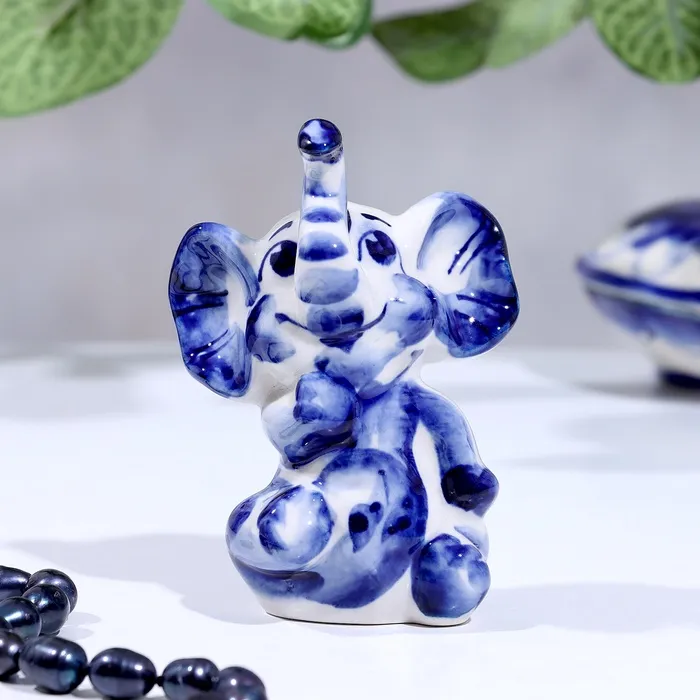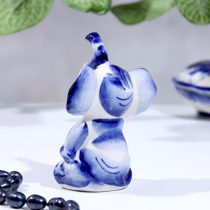 Сувенир гжель «Слон Ксюша», бело-синий,керамика, — Характеристики