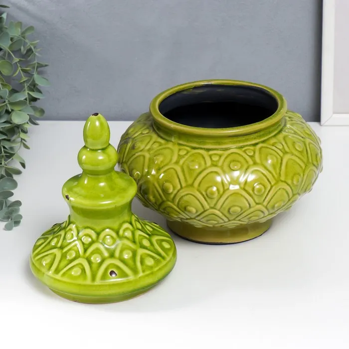 Сувенир интерьерный керамика шкатулка "Чешуйки" зелёный 29х22х22 см — Характеристики