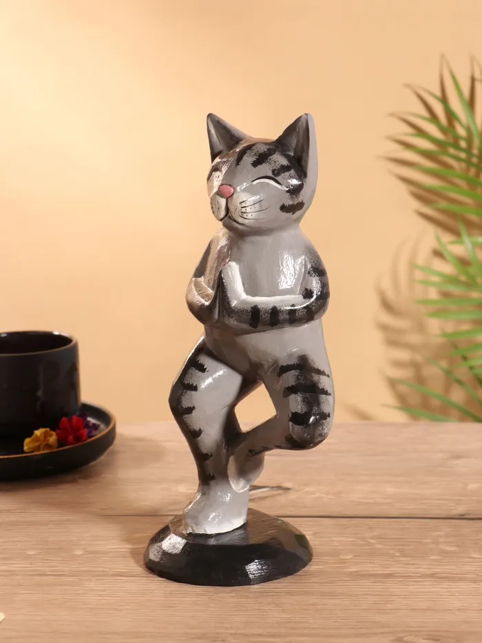 Сувенир интерьерный «Кот-йог», 28 см, дерево — Характеристики