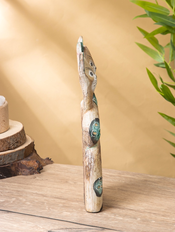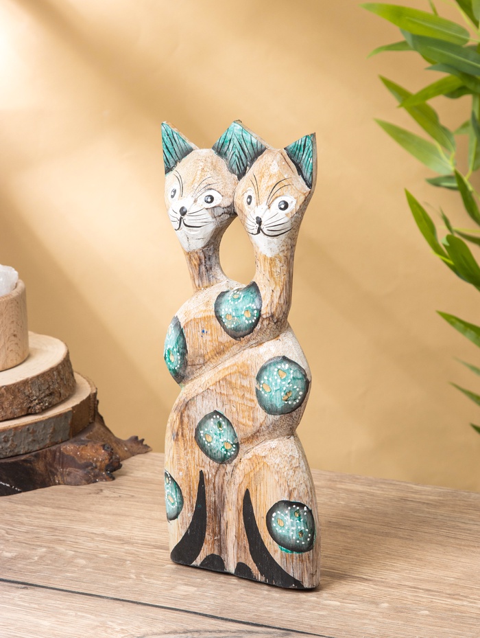 Интерьерная композиция «Сиамские кошечки» — вытянутая деревянная скульптура высотой 30 см, расписанная в мягких разноцветных тонах. Две кошки, прижавшиеся друг к другу, создают образ неразлучной пары — трогательной, но не слащавой. Такой сувенир уместно смотрится на узкой полке, каминной доске или в изголовье кровати, добавляя пространству тепла и личного смысла.