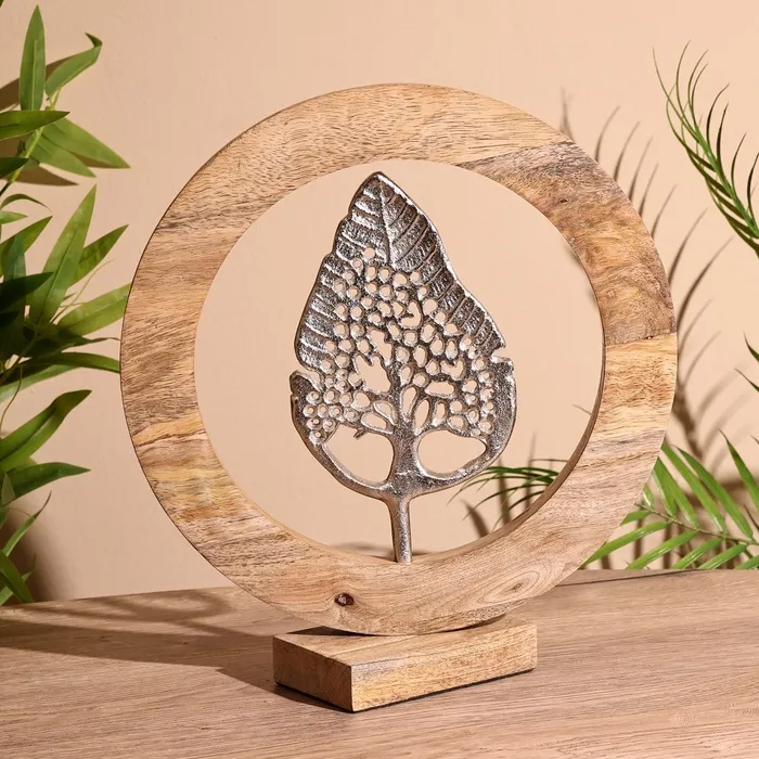 Сувенир интерьерный в деревянном кольце «Лист», 30×8×33 см