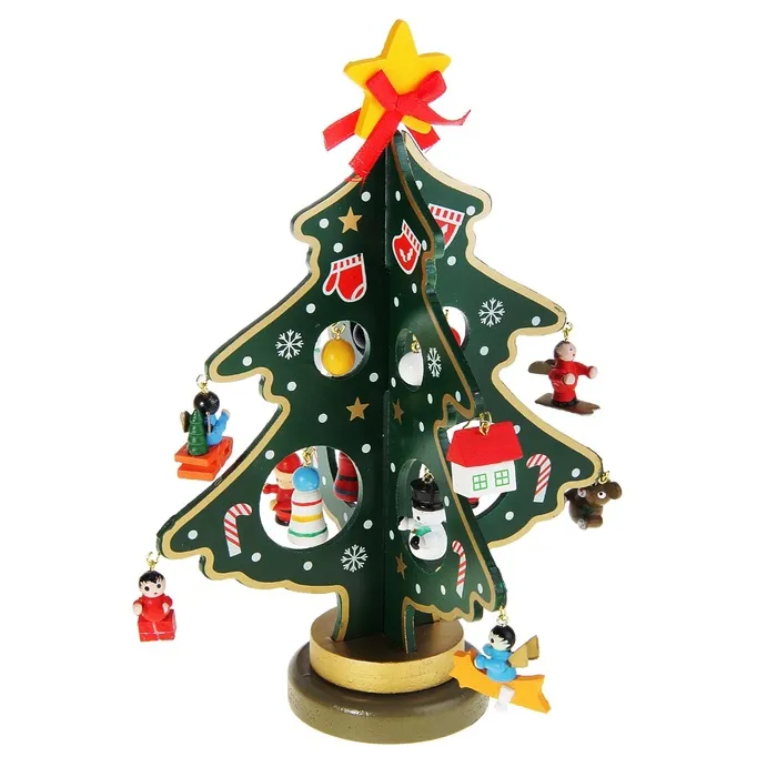 Нарядная деревянная ёлочка – оригинальное решение для стильного праздничного интерьера. Складной сувенир легко собирается и разбирается по частям. Подготовка помещения к Новому году не займёт много времени и сил.