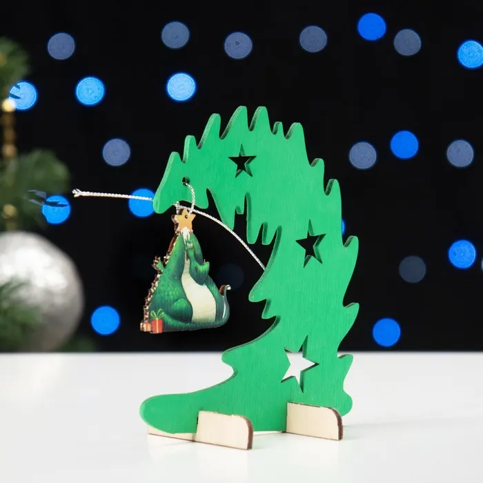 Сувенир «Ёлка с драконом» изогнутая, 13×11 см, зеленая — Характеристики