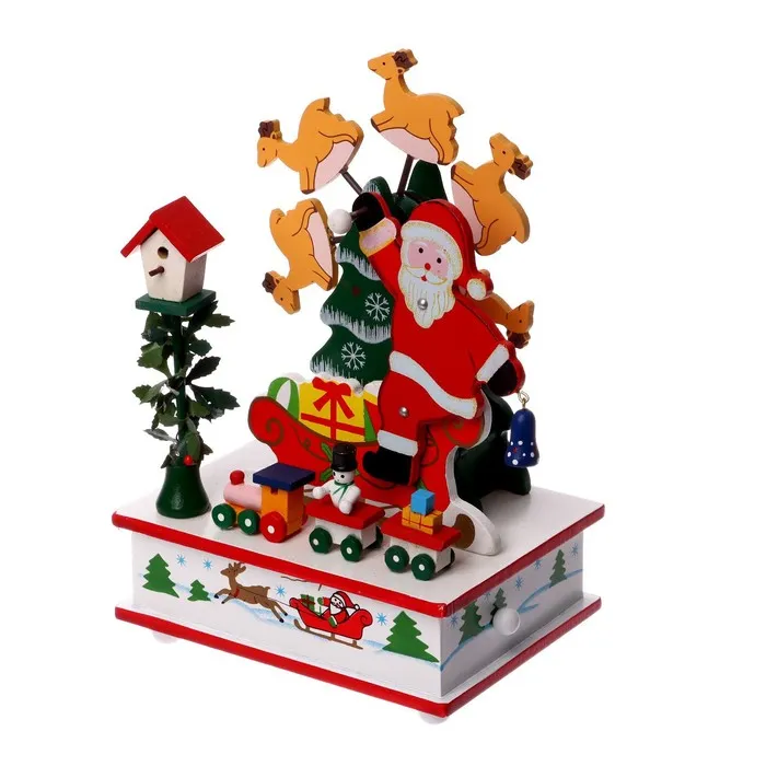 Новогодняя карусель с Дедом Морозом — это изысканный сувенир, который станет центром праздничного декора. Вращающаяся конструкция и звуковые эффекты создают атмосферу зимнего волшебства, делая её идеальным подарком для близких или украшением дома.