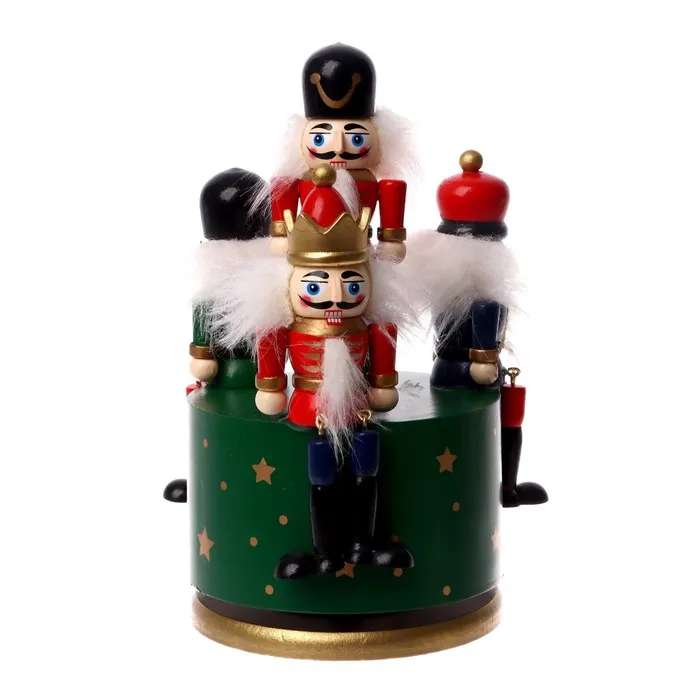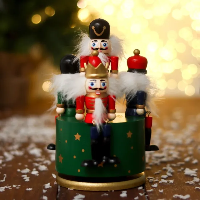 Карусель с Щелкунчиками — это не просто украшение, а маленький праздник в вашем доме. Её вращающиеся фигурки и мелодичные звуки создают волшебную атмосферу, которая понравится и детям, и взрослым. Такой сувенир станет прекрасным дополнением к новогоднему декору или запоминающимся подарком для близких.