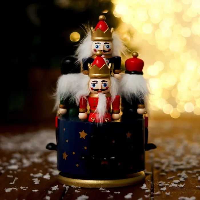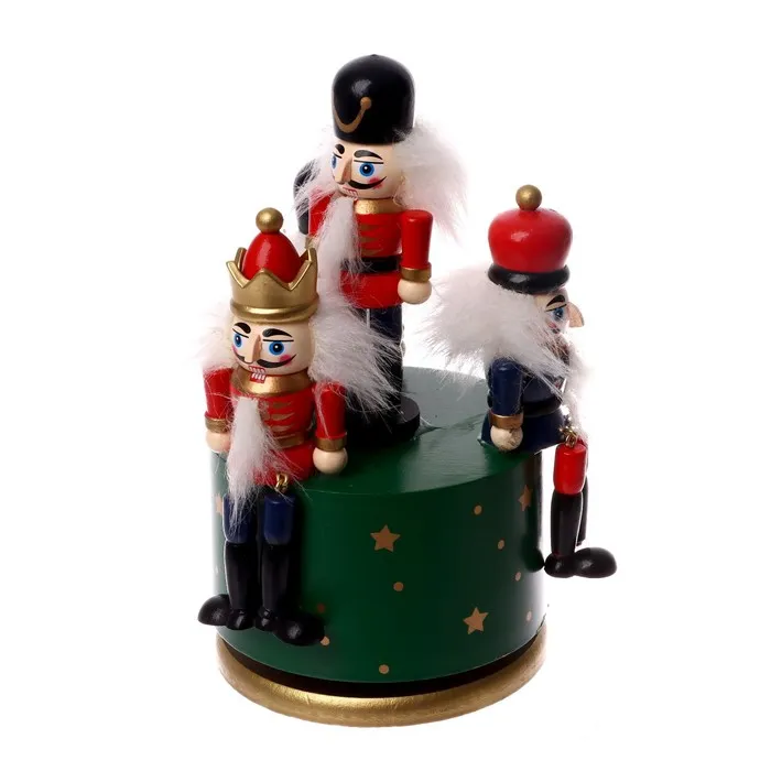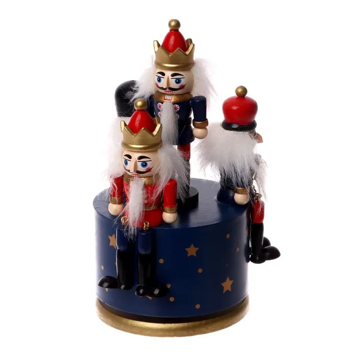 Новогодняя карусель с фигурками Щелкунчиков — это изящный сувенир, который создаст праздничное настроение в вашем доме. Вращающаяся конструкция и звуковые эффекты погружают в атмосферу зимней сказки, делая её идеальным украшением для новогодних праздников.