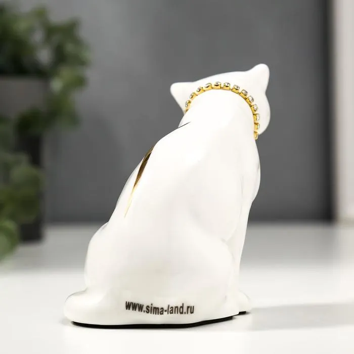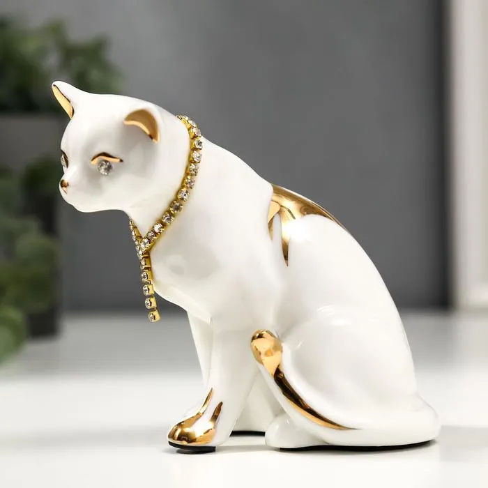 Сувенир керамика "Белая кошечка с ожерельем" с золотом, стразы 10,2 см — Характеристики