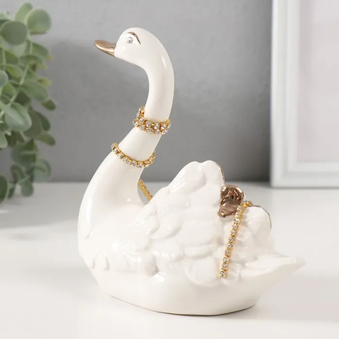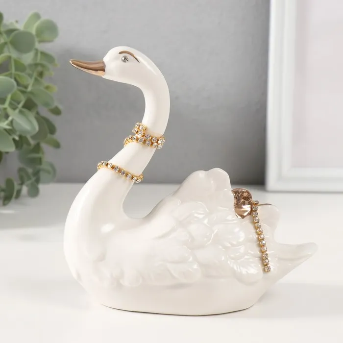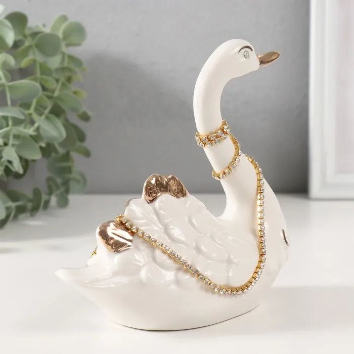 Сувенир керамика "Белая лебедь с ожерельем из страз" с золотом — Характеристики