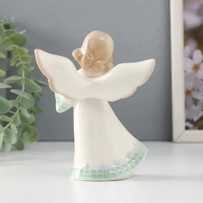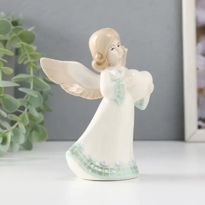 Сувенир керамика "Девочка-ангел в платье с клеткой с сердцем" 9х7х12 см — Характеристики