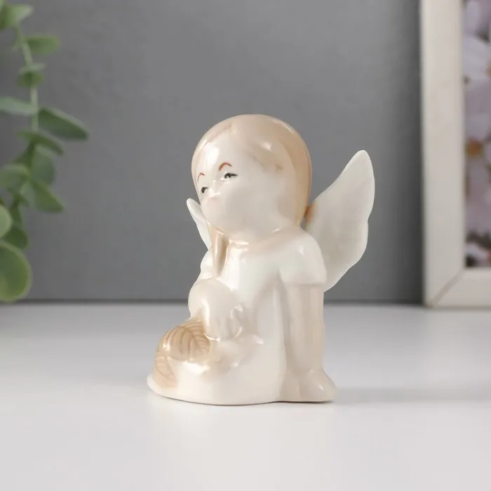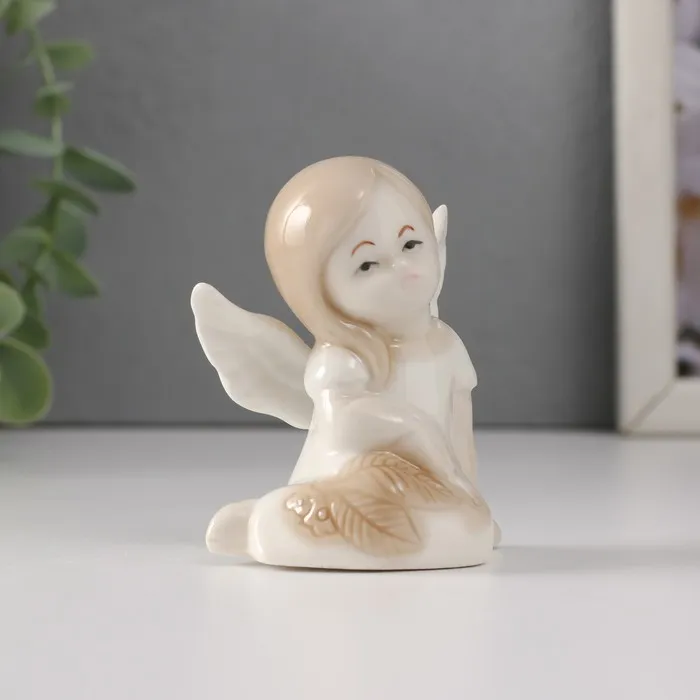 Сувенир керамика "Девочка-ангел в платье с листьями сидит" 5,8х3,5х7 см — Характеристики