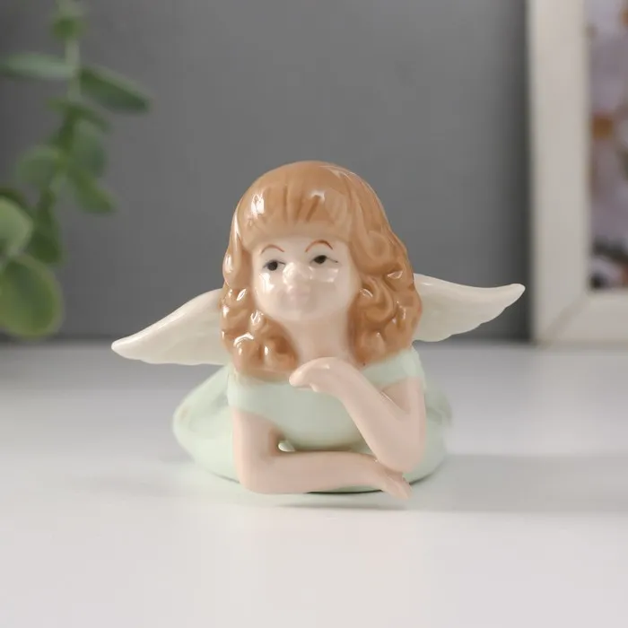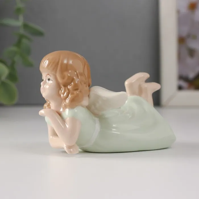 Сувенир керамика "Девочка-ангел в зелёном платье лежит" 9х7х5,5 см — Характеристики
