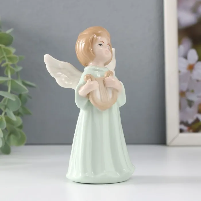 Сувенир керамика "Девочка-ангел в зелёном платье с лирой в руках" 7х5,5х12,2 см — Характеристики