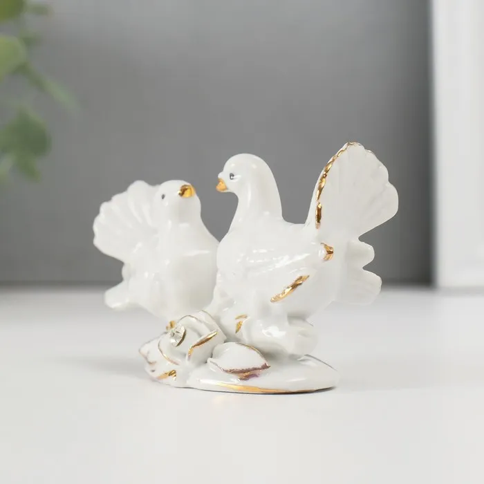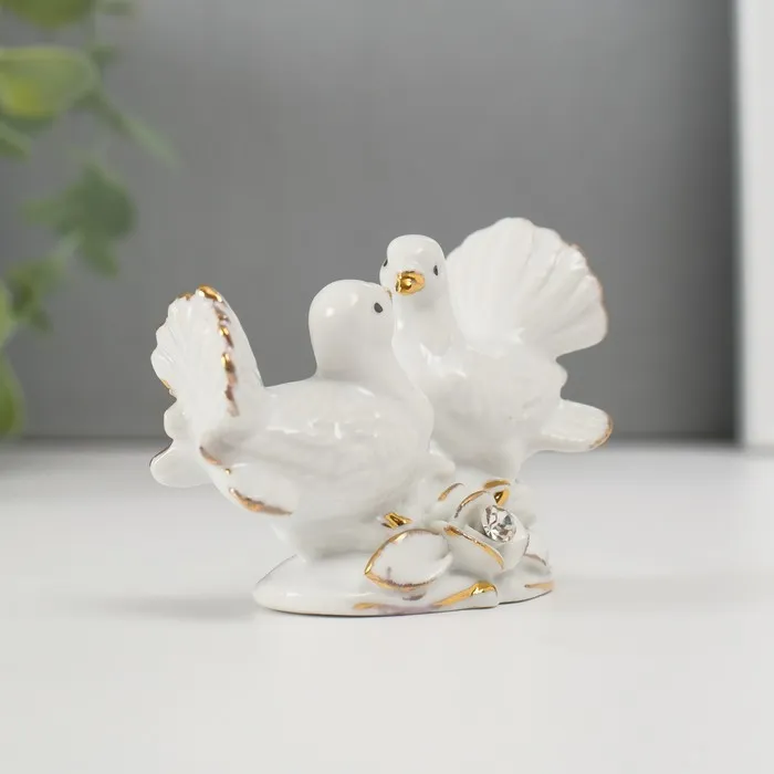Сувенир керамика "Голубки с розой" белый, страза 5,8х8,7х4,2 см — Характеристики