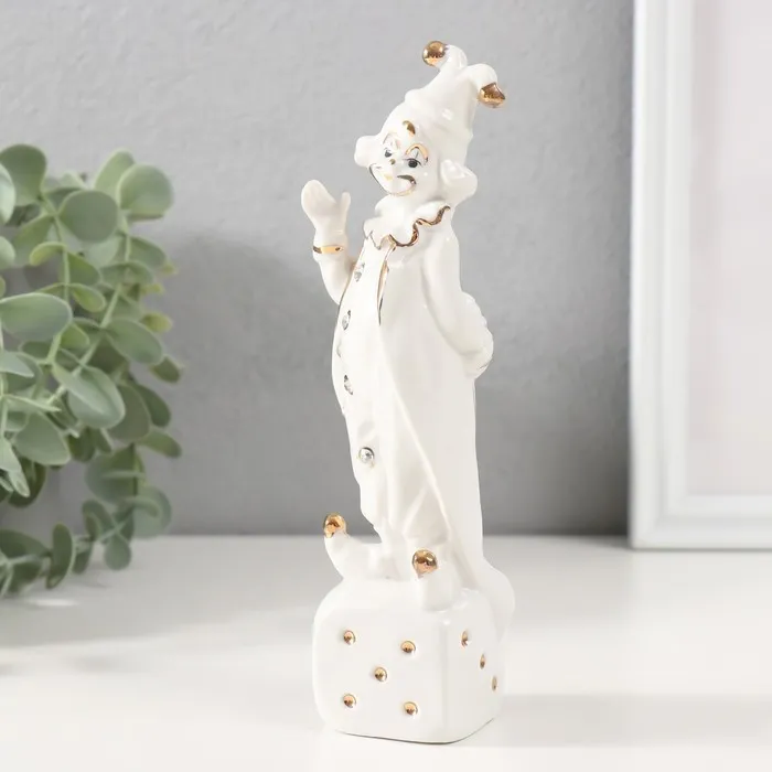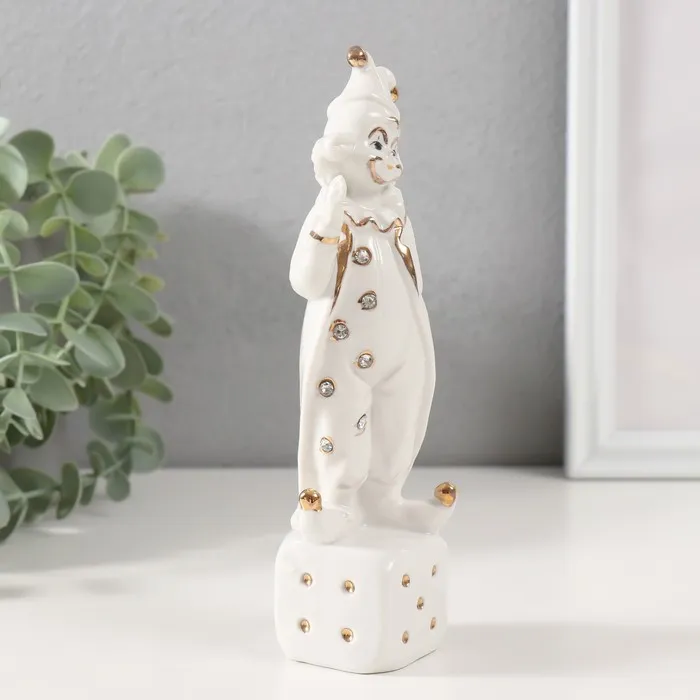 Сувенир керамика "Клоун на игральном кубике" белый с золотом, стразы 4,5х4,5х18 см — Характеристики