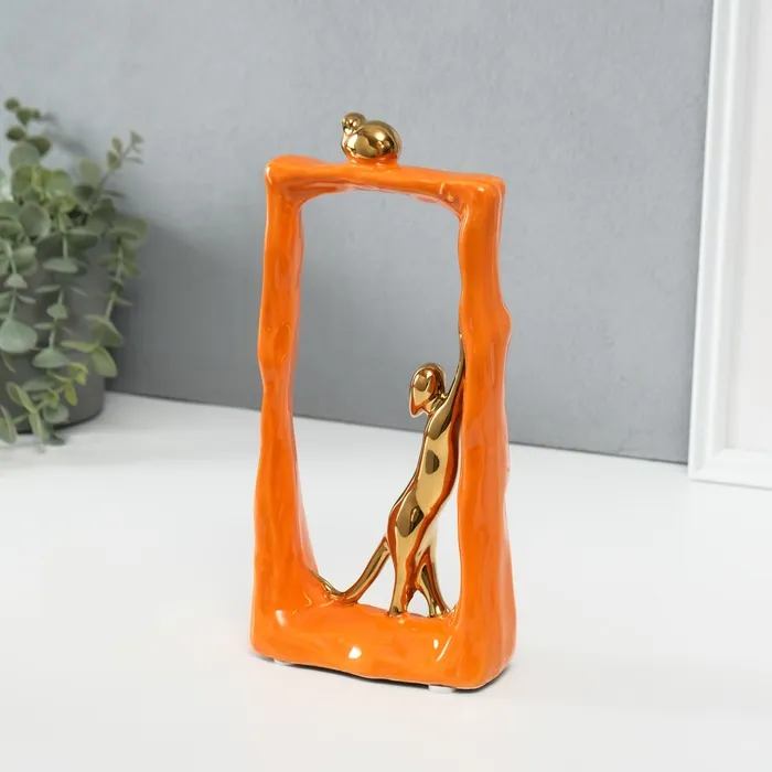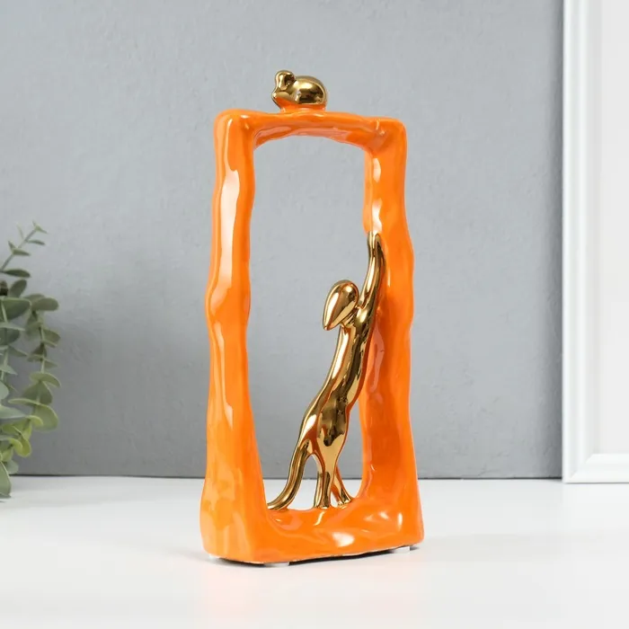 Сувенир керамика "Кошки-мышки - охота. Прямоугольник" оранжевый с золотом 6,2х12х24,5 см — Характеристики