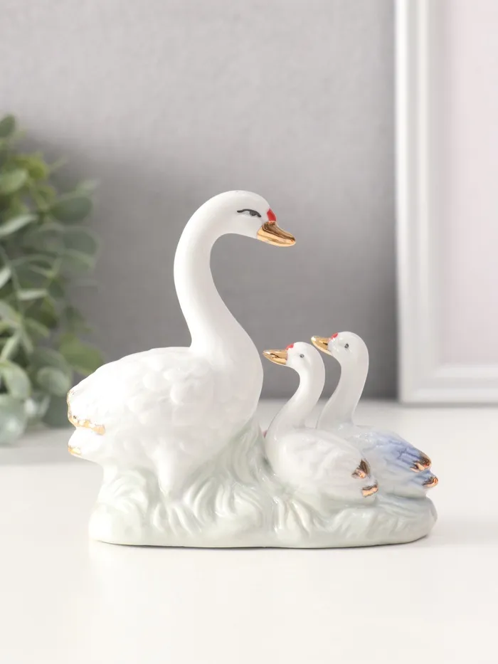Сувенир керамика "Лебедь с детками на полянке" 10 см — Характеристики