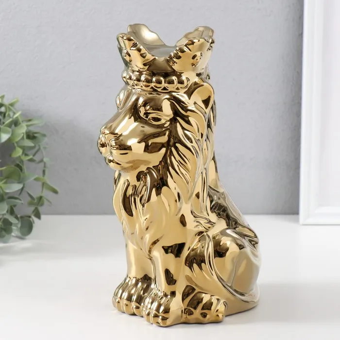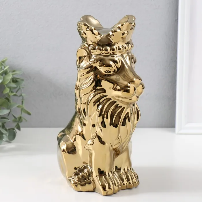 Сувенир керамика "Лев в короне" золото 17х12х26 см — Характеристики