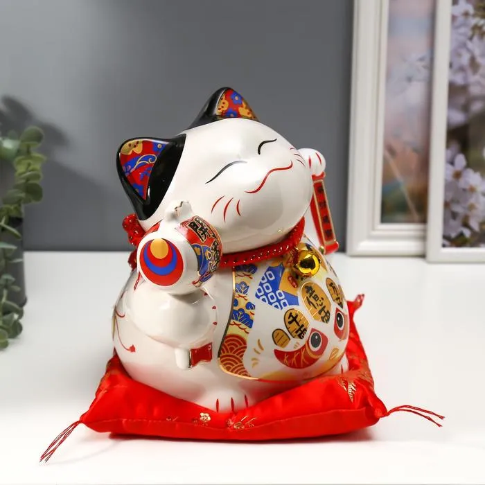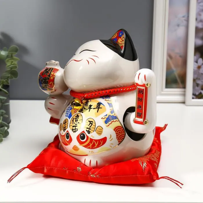 Сувенир керамика маятник "Кот Манэки-нэко с молоточком и свитком" 19,5х20х14,5 см — Характеристики