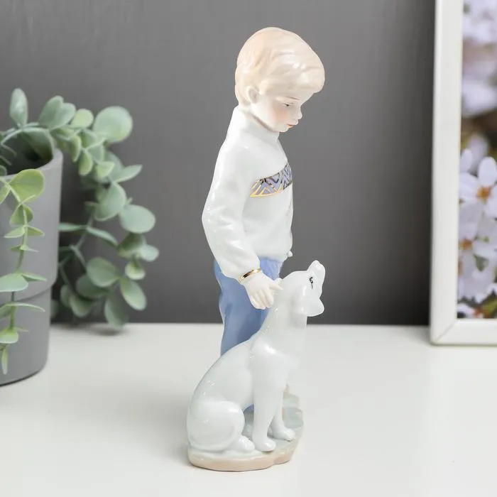 Сувенир керамика "Мальчик с пёсиком" 22х11,5х5 см — Характеристики