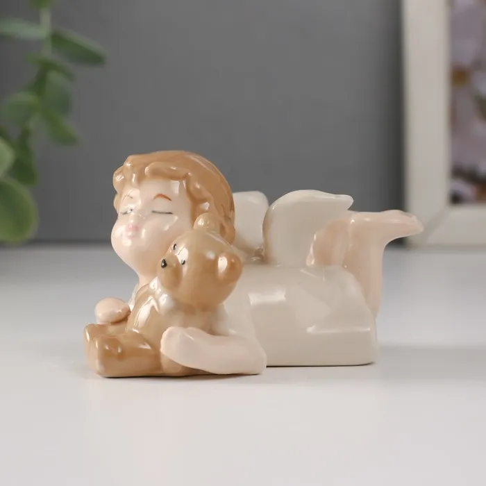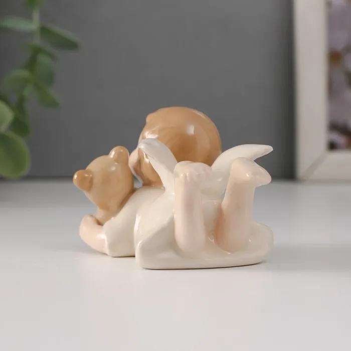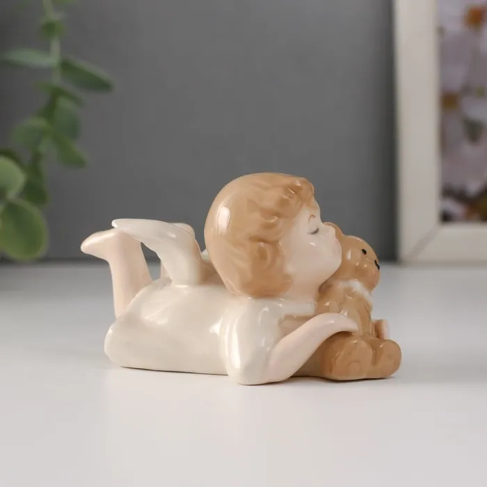 Сувенир керамика "Малышка-ангел лежит с медвежонком" 8,5х4,8х5 см — Характеристики