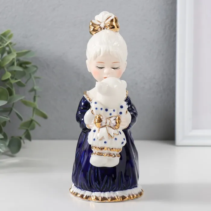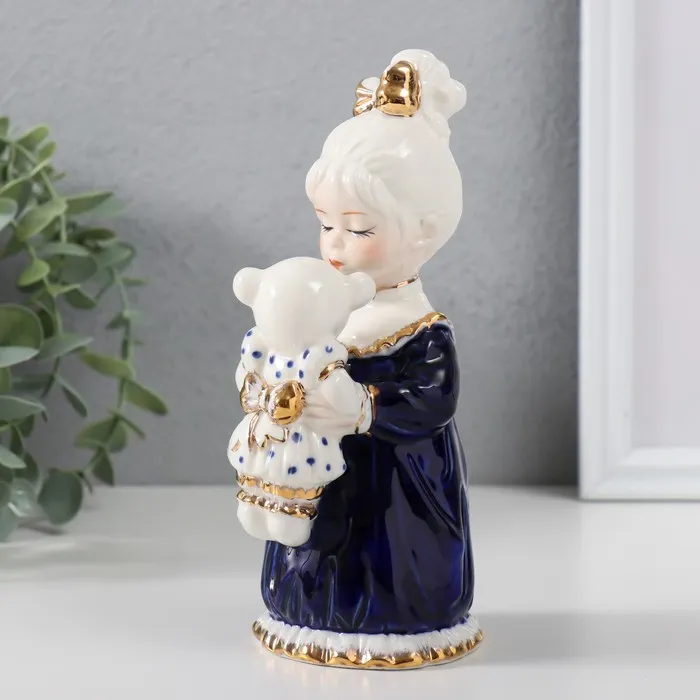 Сувенир керамика "Малышка в ночной рубашке с медвежонком" кобальт 7х7,5х16,5 см