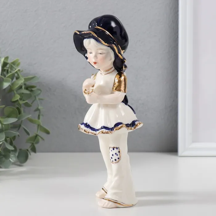 Сувенир керамика "Малышка в шляпке - гадание на ромашке" кобальт 7,5х7,5х20 см — Характеристики