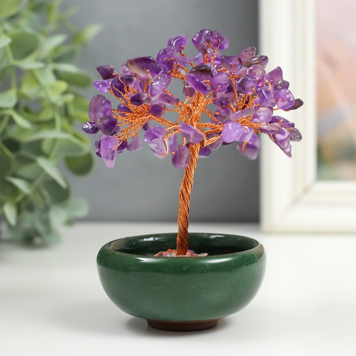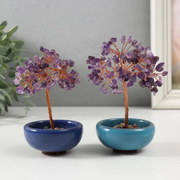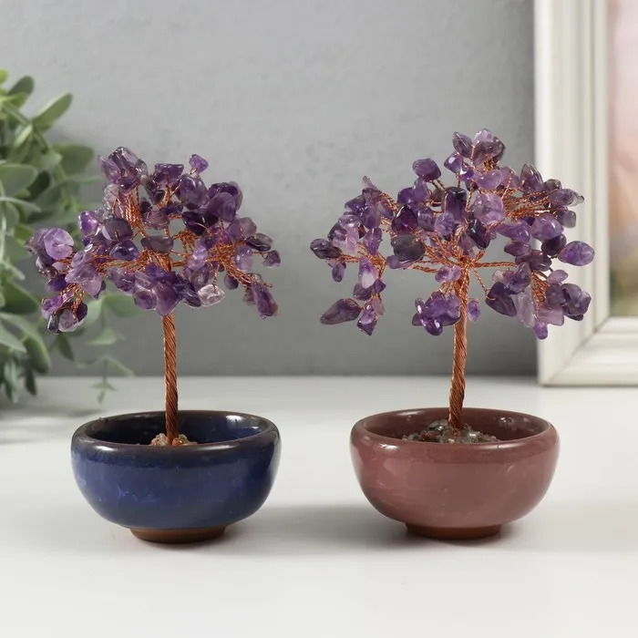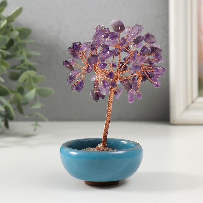 Сувенир керамика, металл, акрил "Деревце удачи в горшочке" под аметист МИКС — Характеристики