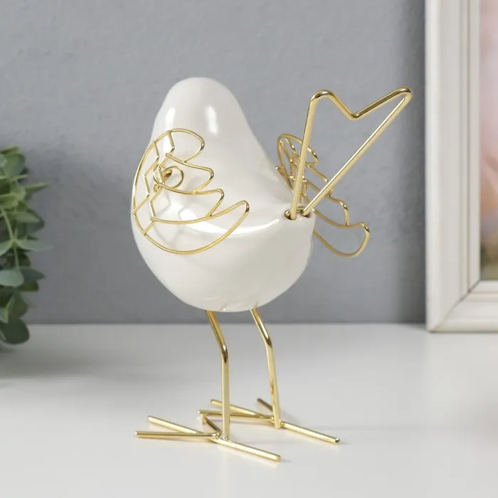 Сувенир керамика, металл "Белый воробей" с золотыми крыльями 9х17х17 см — Характеристики
