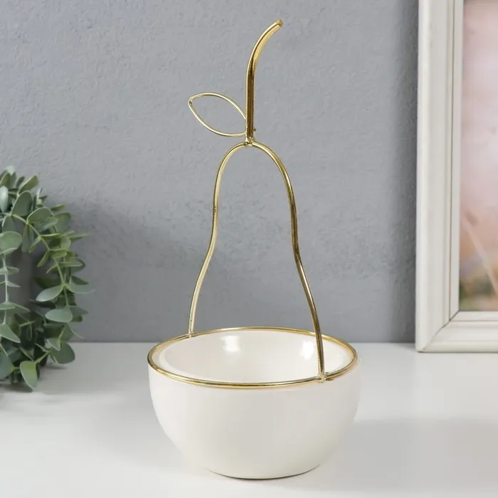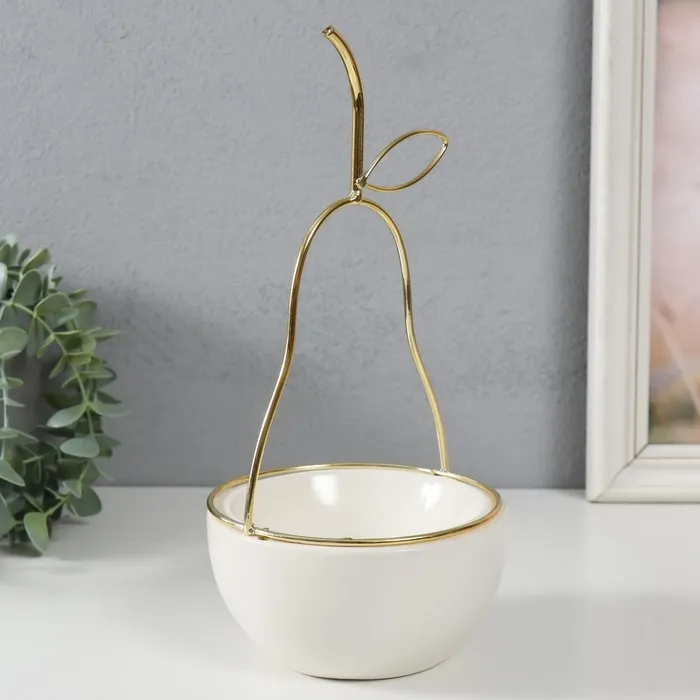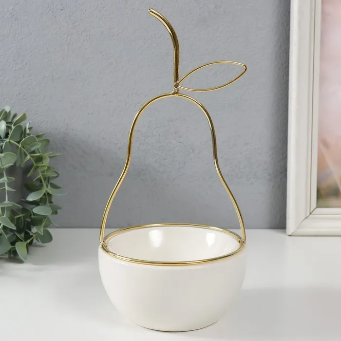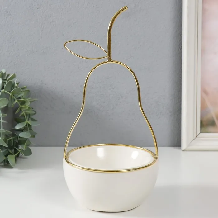 Сувенир керамика, металл подставка "Груша" белая с золотом 13х13х25,5 см — Характеристики