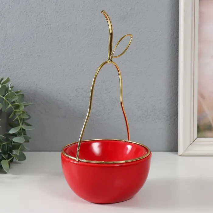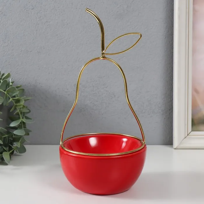 Сувенир керамика, металл подставка "Груша" красная с золотом 13х13х25,5 см — Характеристики