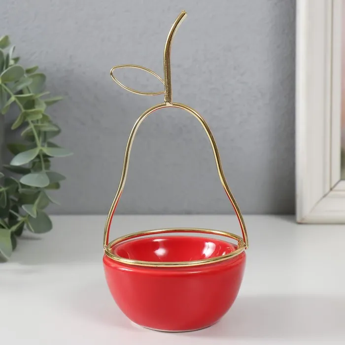 Сувенир керамика, металл подставка "Груша" красная с золотом 8х8х17 см — Характеристики