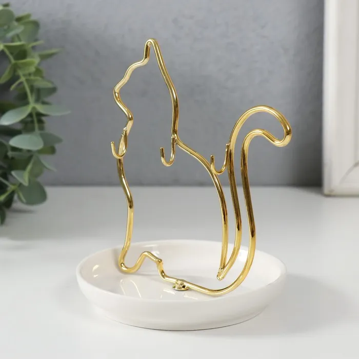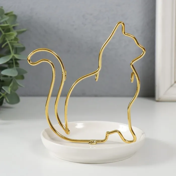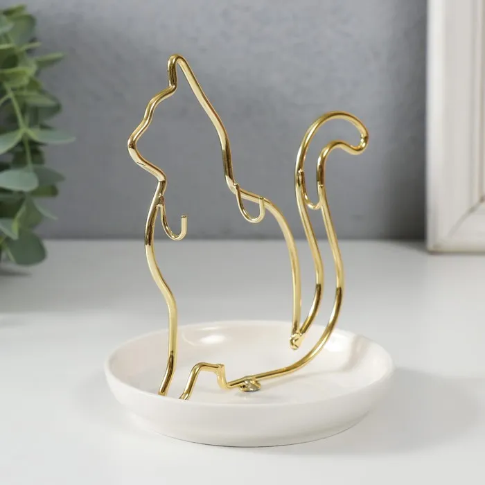 Сувенир керамика, металл подставка "Кошка" белая с золотом 10,5х10х12,5 см — Характеристики