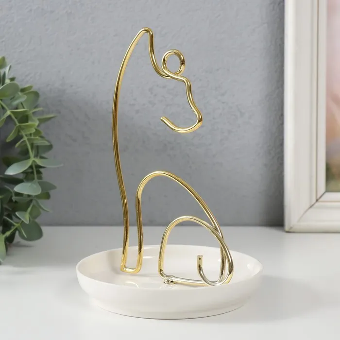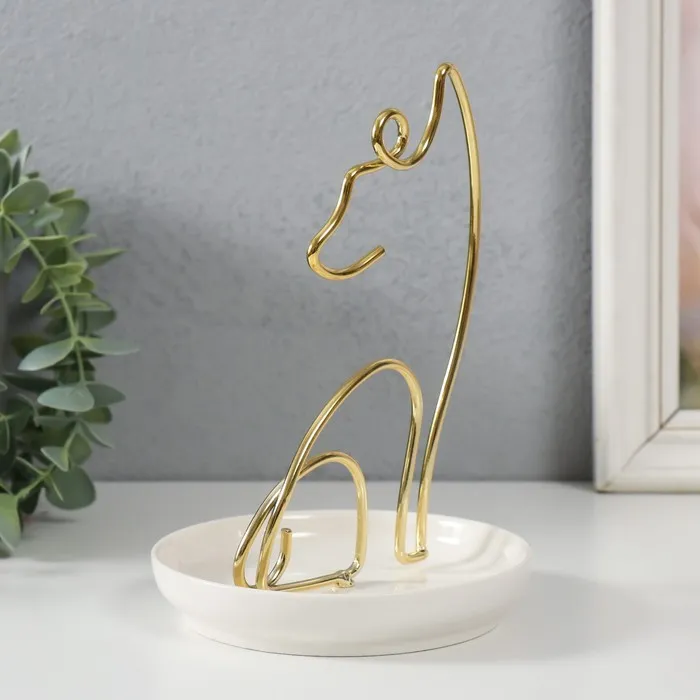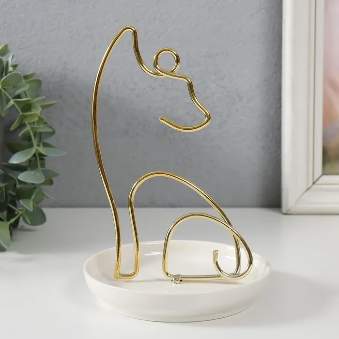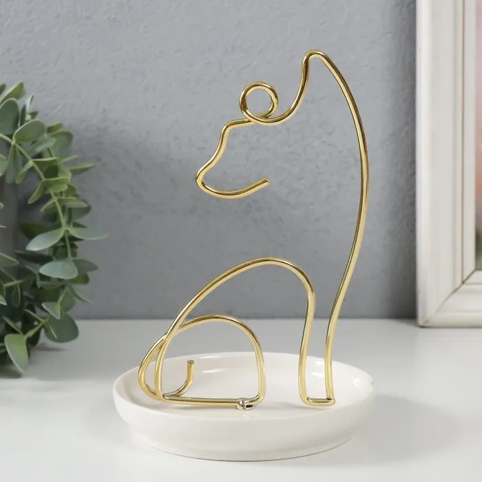 Сувенир керамика, металл подставка "Котик" белый с золотом 12х12х17 см — Характеристики