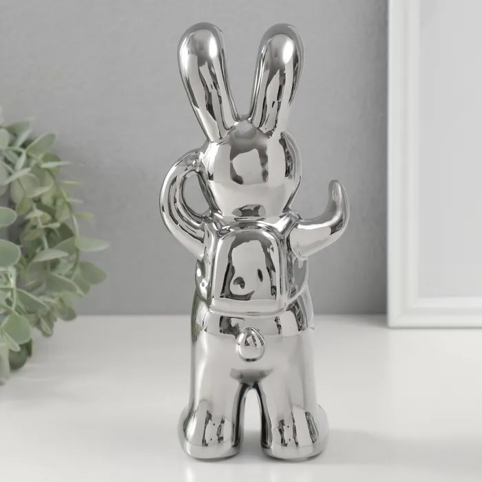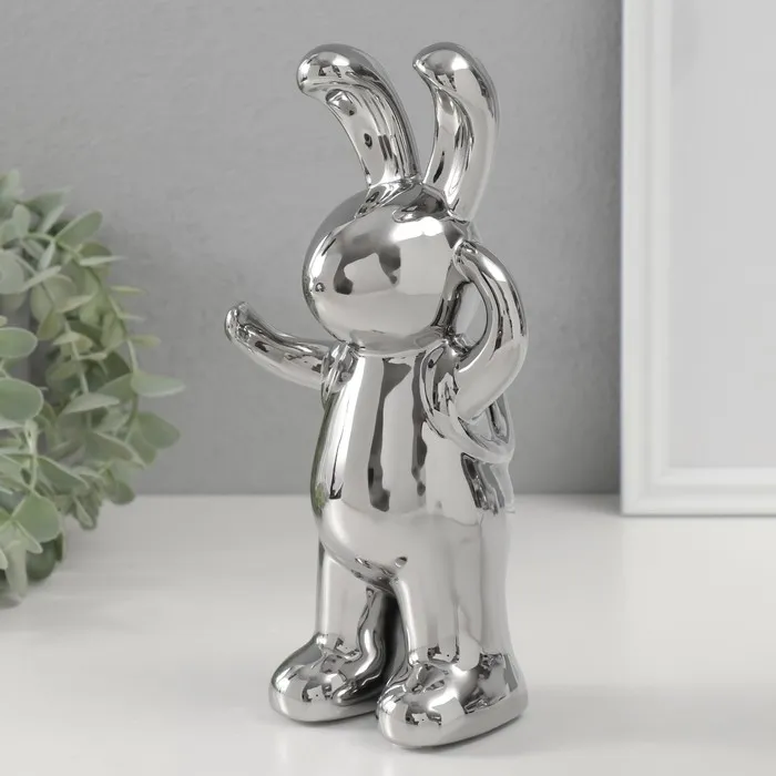 Сувенир керамика "Модный зайка" серебро 7х9,5х22 см — Характеристики