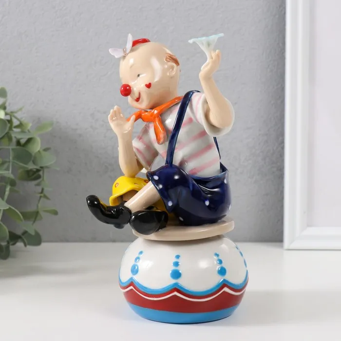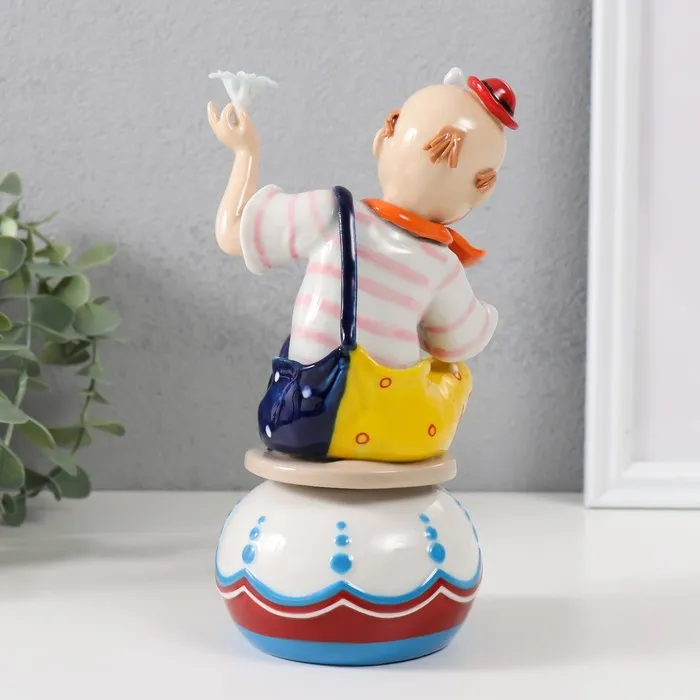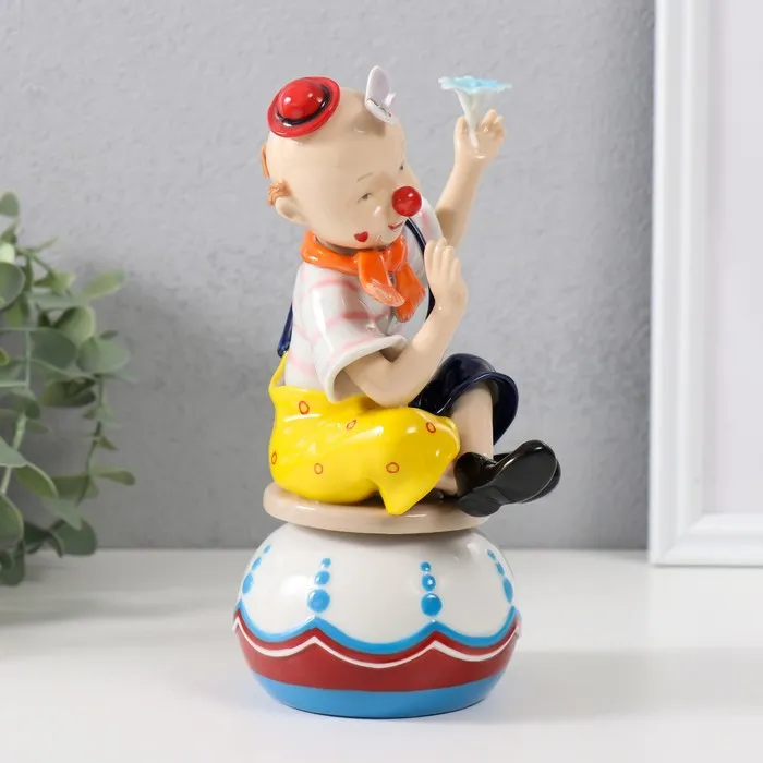 Сувенир керамика музыкальный "Клоун с бабочкой и цветком, сидит на чашке" 9,5х10х18 см — Характеристики
