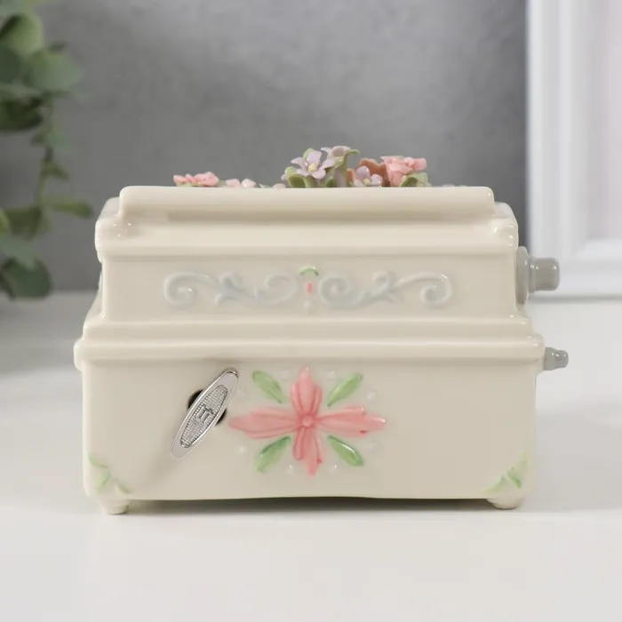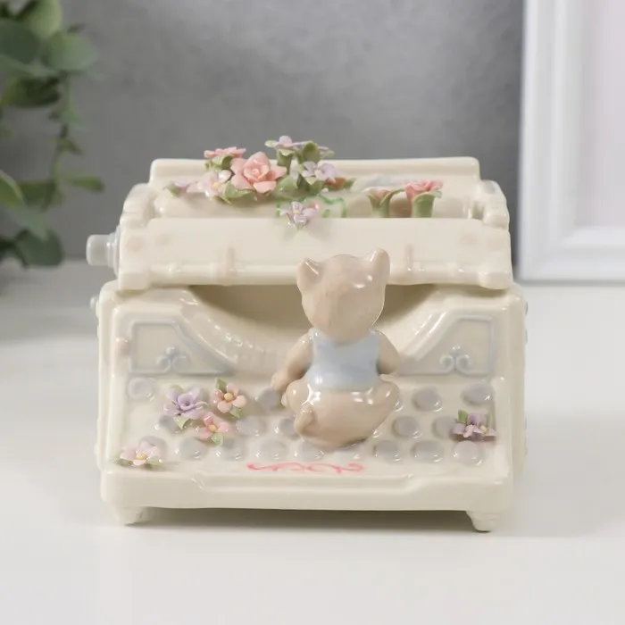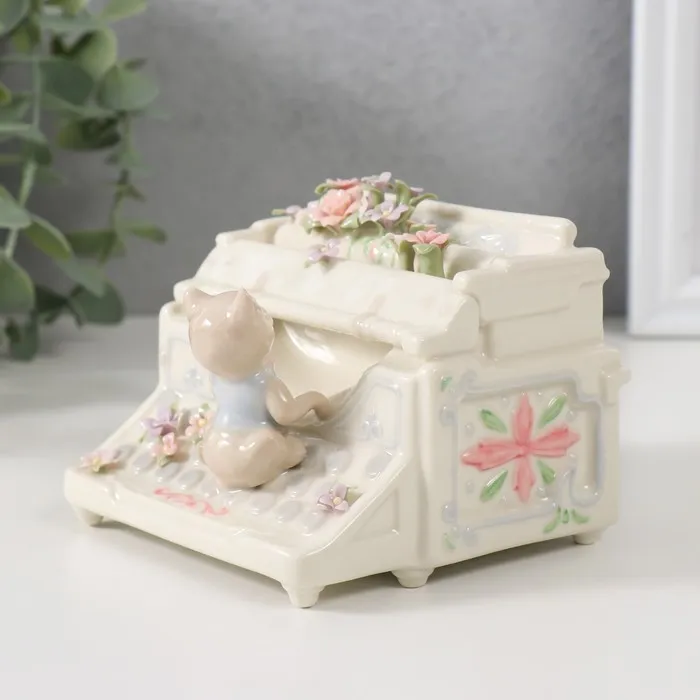 Сувенир керамика музыкальный "Котёнок с цветочной печатной машинкой" 9х11х7,5 см — Характеристики