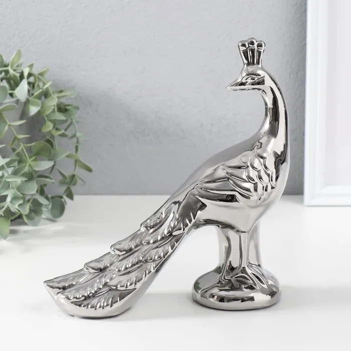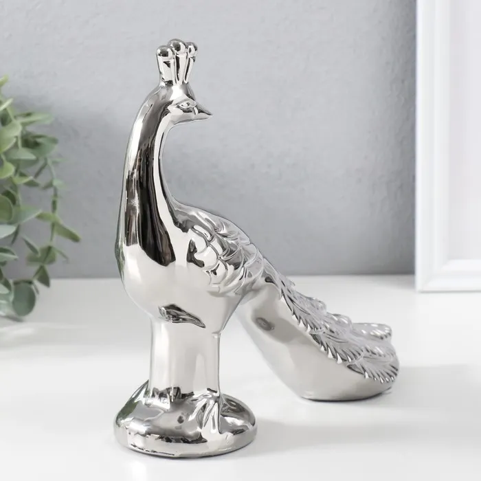 Сувенир керамика "Павлин" серебро 20,5х7х21,5 см — Характеристики