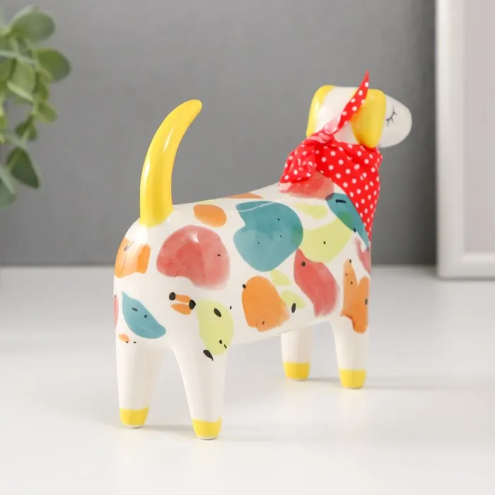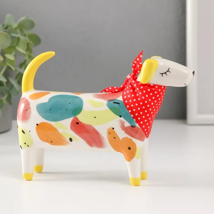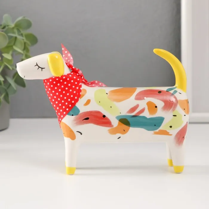 Сувенир керамика "Пёсик с косынкой" разноцветные пятна 16,7х5х11,8 см — Характеристики