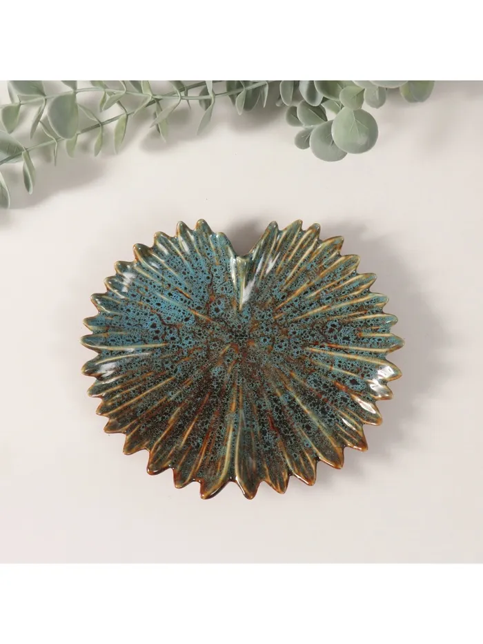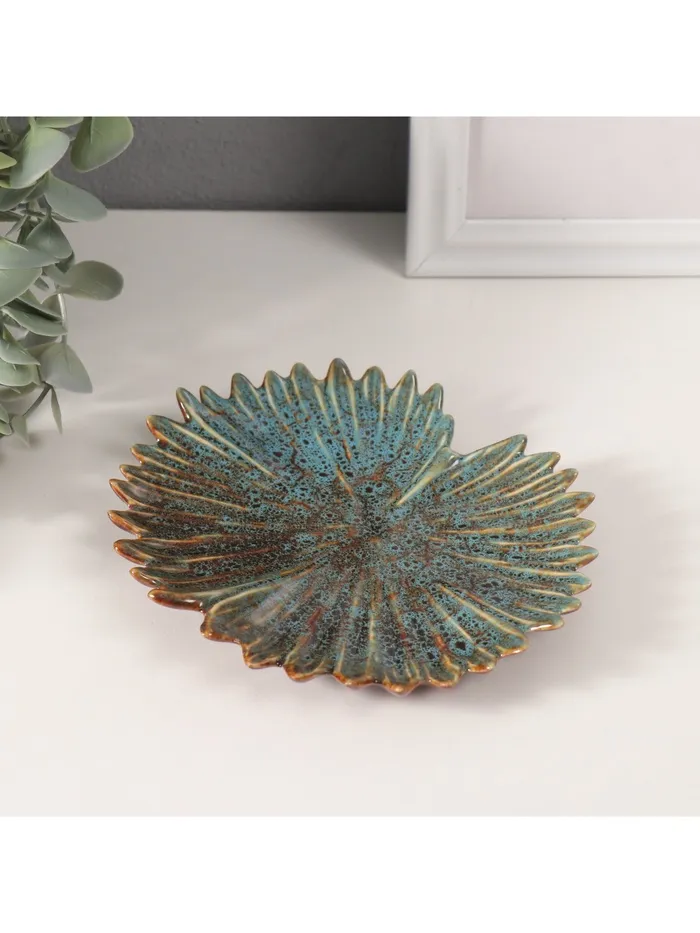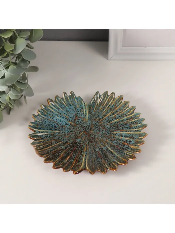 Сувенир керамика подставка "Лист полусолнце" зелёный глянец 13х14,5х1,5 см — Характеристики