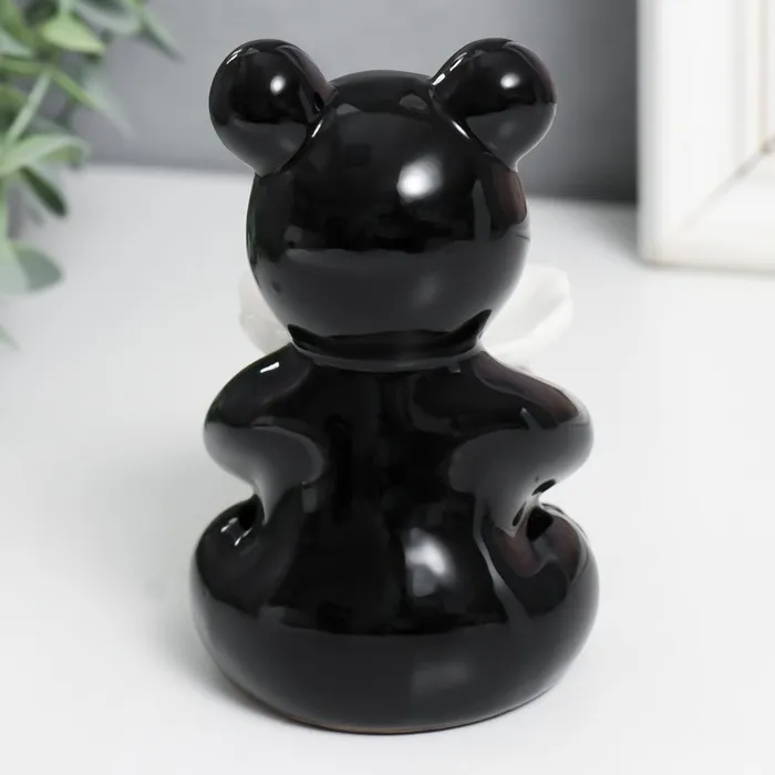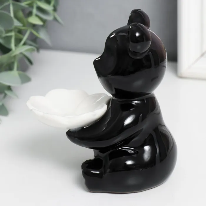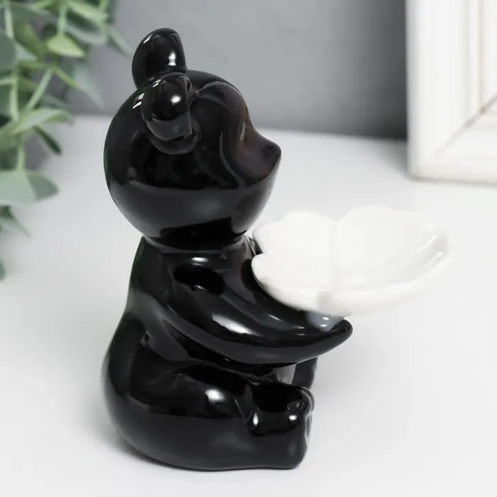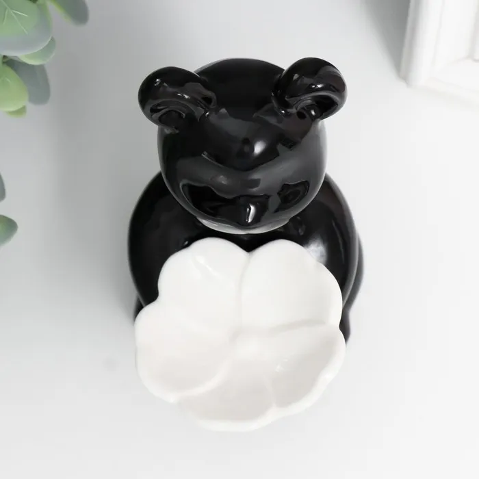 Сувенир керамика подставка "Мишка с белым цветком" чёрный 7х9х10,5 см — Характеристики