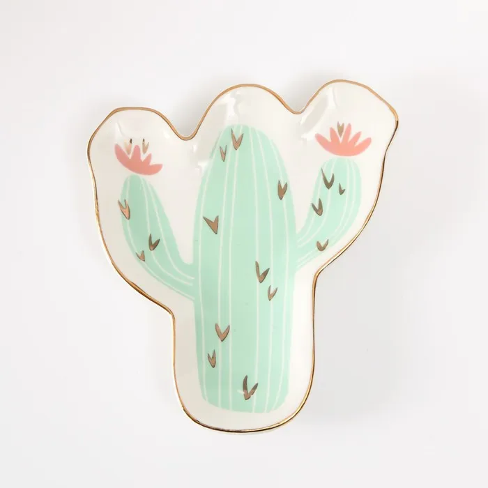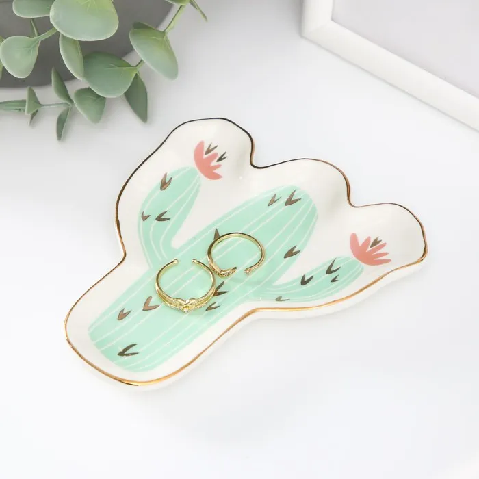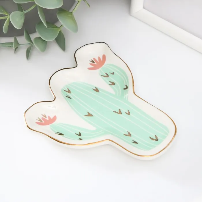 Сувенир керамика подставка под кольца "Кактус с цветами" 1,6х11х12 см — Характеристики